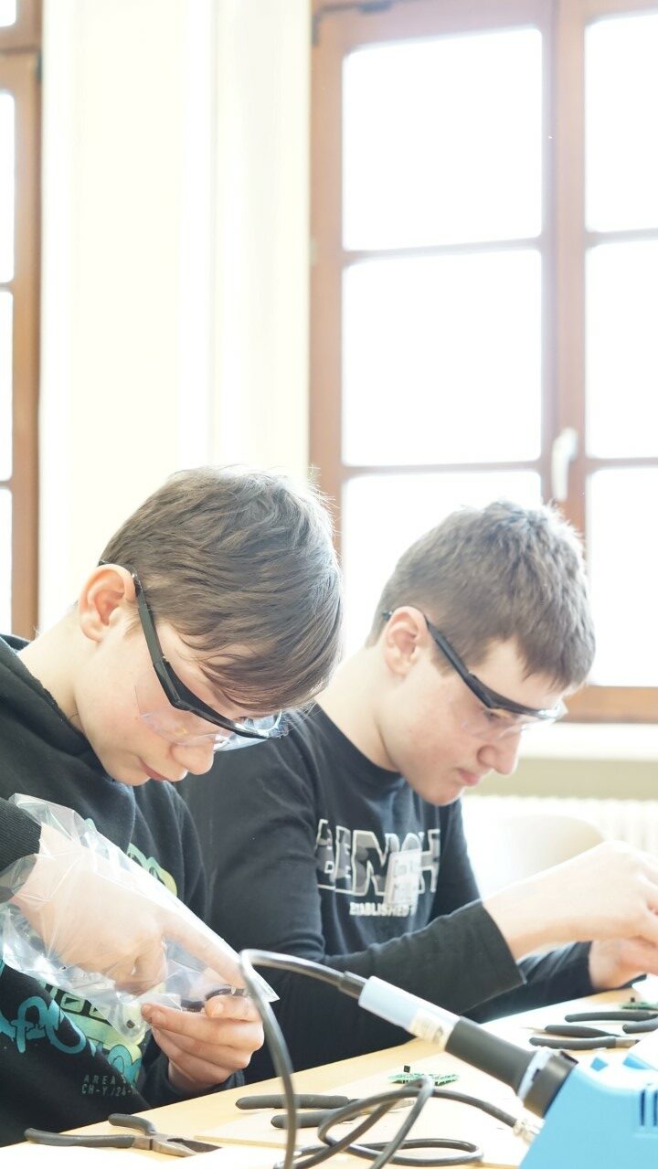 Wir verfügen über gut ausgestattete Fachunterrichtsräume (Biologie, Chemie, Physik, Informatik und Kunst) sowie ein Multifunktionskabinett und eine moderne Drei-Felder-Sporthalle. Die Klassenzimmer und Flure sind freundlich und ästhetisch gestaltet. Die Schüler haben die Möglichkeit, an der Gestaltung der Räume und des gesamten Schulhauses mitzuwirken. Im Schulhaus werden regelmäßig aktuelle Dokumentationen durchgeführter Projekte und Aktivitäten veröffentlicht.